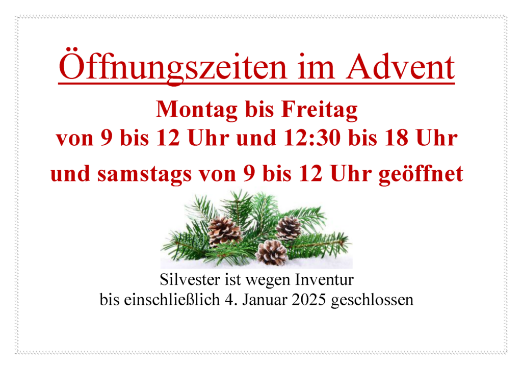 Mo Di Mi Fr 9:00 – 12:00 und 12:30 – 17:00 Uhr